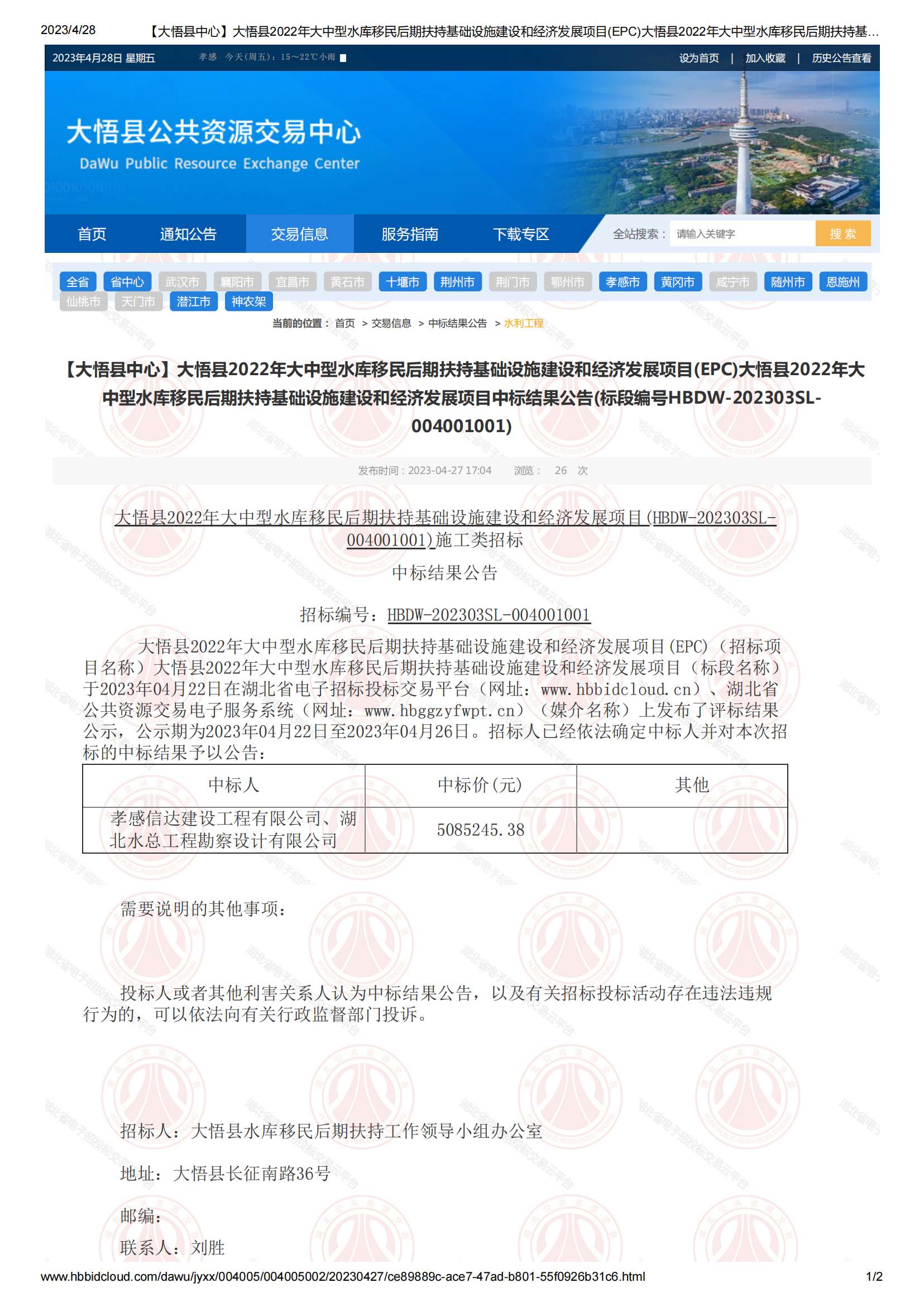 大悟縣2022年大中型水庫移民后期扶持基礎(chǔ)設(shè)施建設(shè)和經(jīng)濟(jì)發(fā)展項(xiàng)目(EPC)