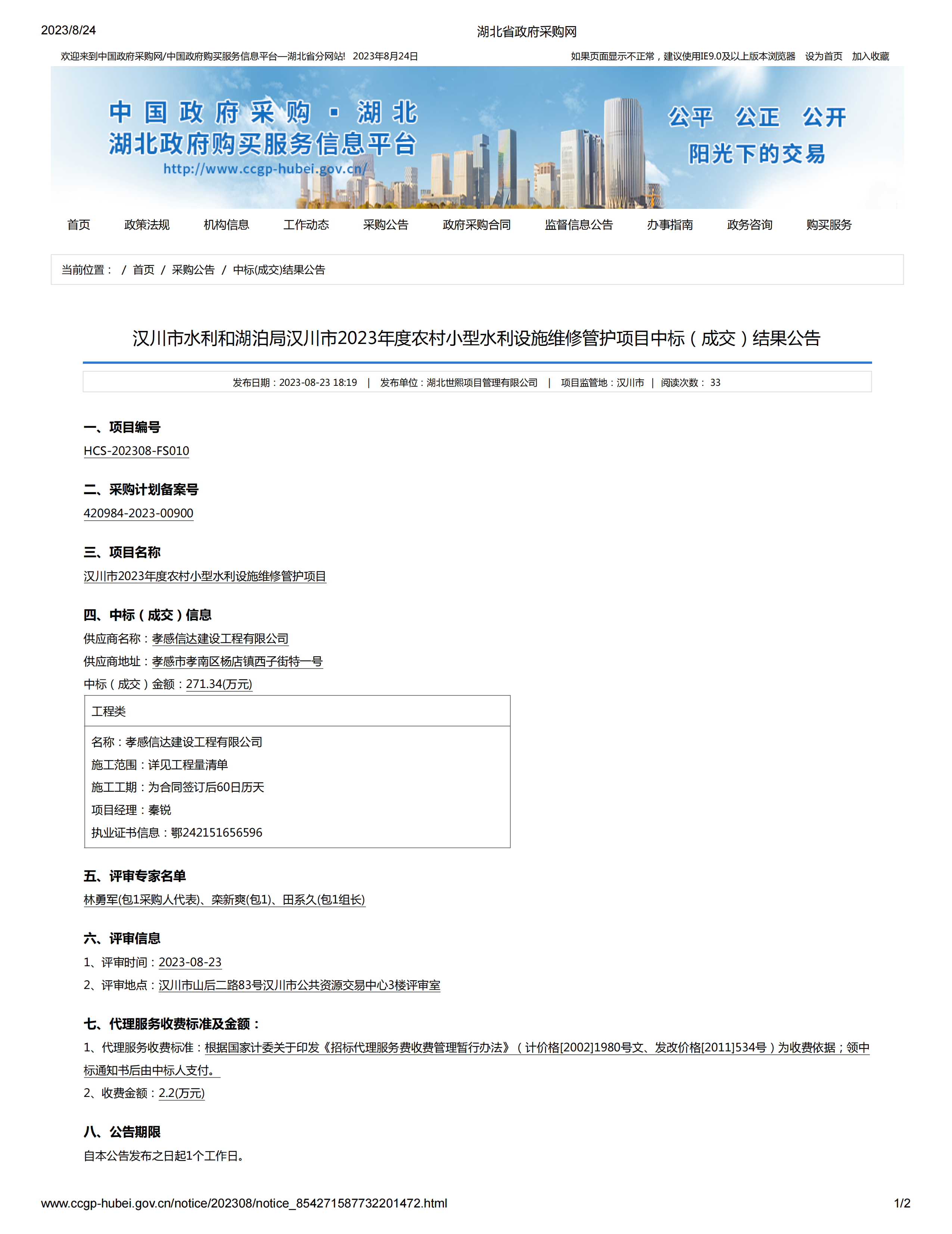 中標金額:2713400.00元